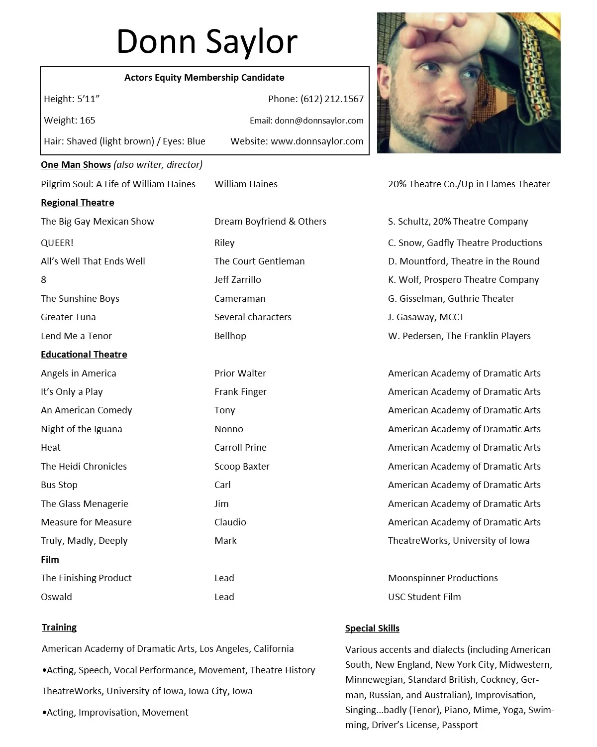 Donn Saylor is a Minneapolis-based actor who has appeared on stages across the country. His one-man show, Pilgrim Soul: A Life of William Haines, which he wrote and performed, had its world premiere in 2013 and opened to critical acclaim. He is currently working with producers and planning future productions of Pilgrim Soul. To learn more about this project, contact Donn.